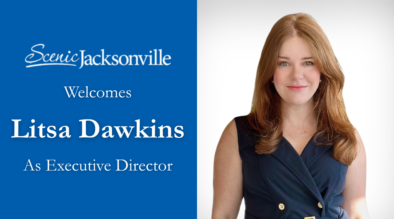 “I am excited to build upon the great work that started with our founder, Bill Brinton, and accelerated in the past six years under Nancy Powell,” said Dawkins. “Scenic Jacksonville has a talented and passionate Board of Directors, and their long-term efforts have made such a positive impact. As our city grows, I am grateful to have the opportunity to collaborate and advance initiatives aimed at improving our scenic environment of livability, walkability, sustainability and overall quality of life.”